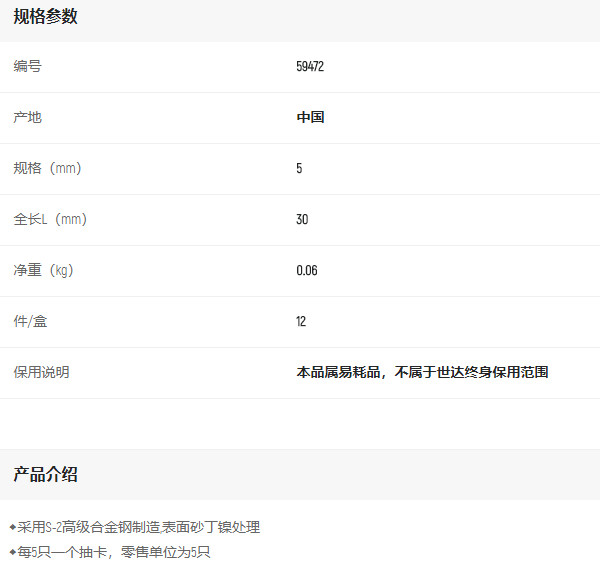 產(chǎn)品名字:世達(dá)5件套8mm系列30mm長(zhǎng)六角旋具頭
