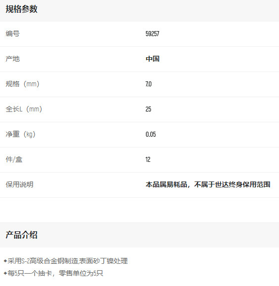 產(chǎn)品名字:世達(dá)6.3mm系列25mm長六角旋具頭7mm