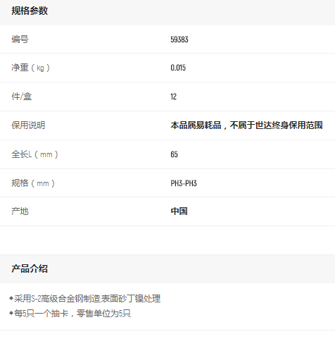 產(chǎn)品名字:世達(dá)6.3MM系列65MM長雙頭旋具頭PH3-PH3