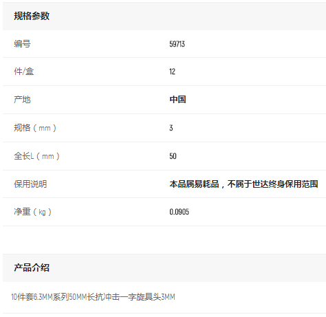 產(chǎn)品名字:世達(dá)10件套6.3MM系列50mm長(zhǎng)一字旋具頭3MM