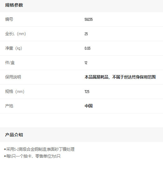 產(chǎn)品名字:世達(dá)5件6.3mm系列長(zhǎng)花形旋頭T25