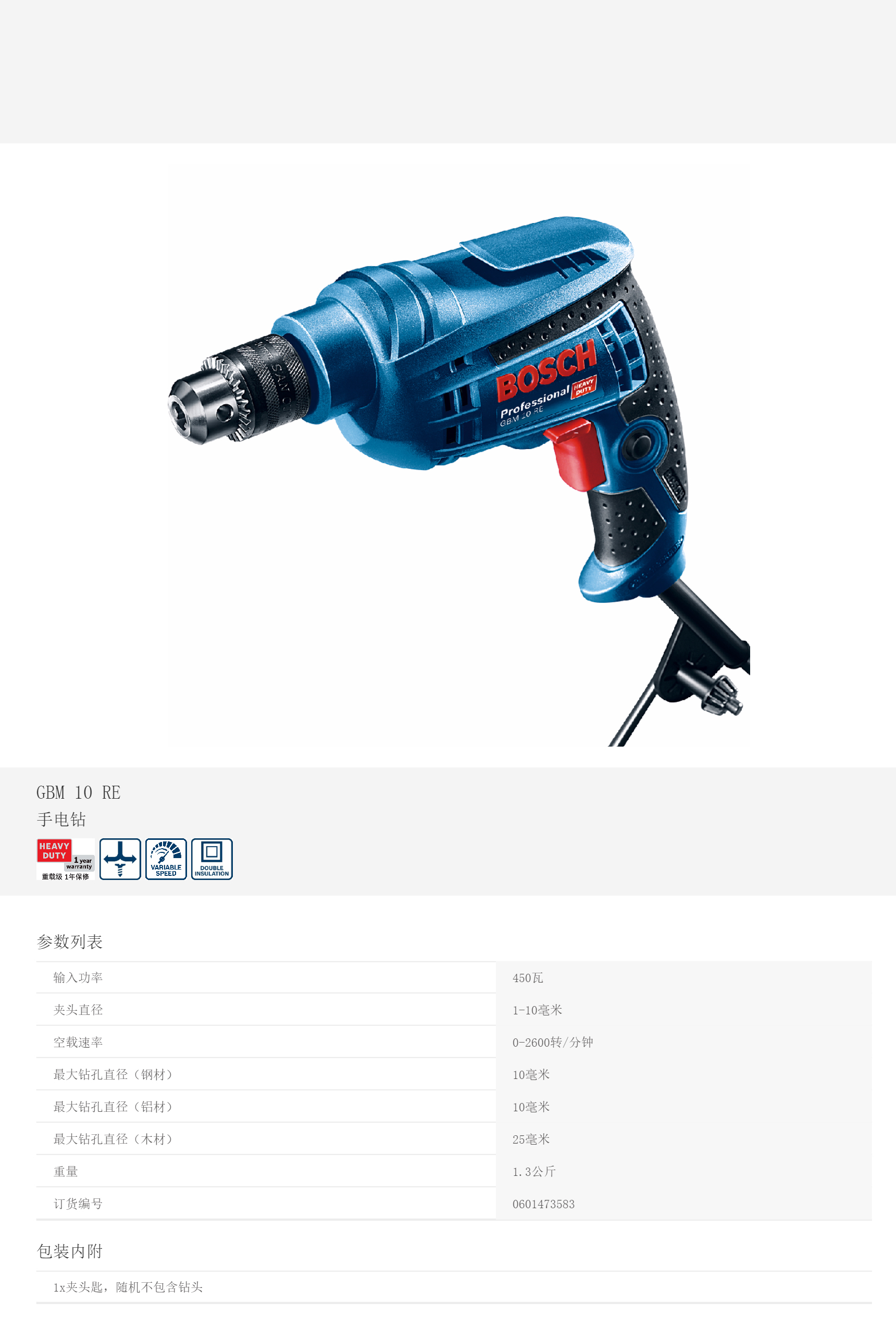 產(chǎn)品名字:博世手電鉆GBM10RE