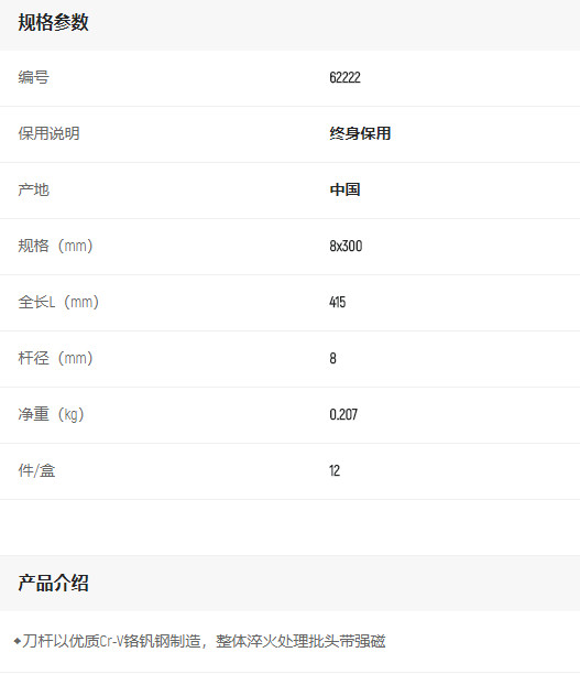首頁>產品中心>螺絲批>一字螺絲批>世達A系列一字批8x300mm