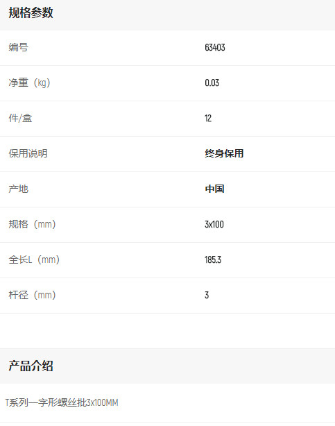 產(chǎn)品名字:世達(dá)T系列一字批3*100mm