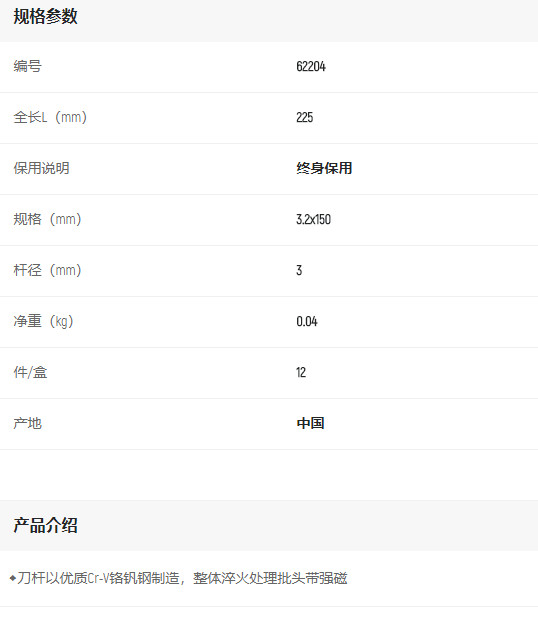 首頁>產(chǎn)品中心>螺絲批>一字螺絲批>世達(dá)A系列一字批3.2mm*150mm