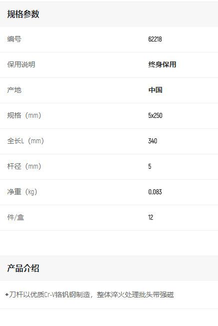產(chǎn)品名字:世達(dá)A系列一字批5*250mm