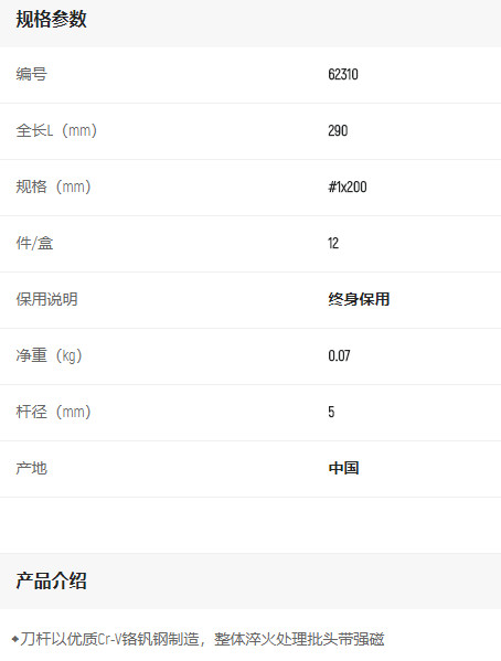首頁>產(chǎn)品中心>螺絲批>十字螺絲批>世達(dá)A系列十字批#1*200mm